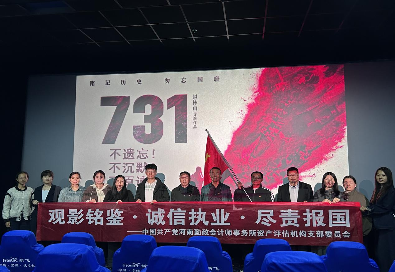 2025年9月18日,在這個(gè)特殊的日子里,為引導(dǎo)事務(wù)所中共黨員、共青團(tuán)員及業(yè)務(wù)骨干成員銘記歷史、堅(jiān)守職業(yè)操守、增強(qiáng)報(bào)國(guó)擔(dān)當(dāng)意識(shí),河南勤政會(huì)計(jì)師事務(wù)所黨支部組織組織開(kāi)展了以“銘記歷史之鑒?恪守職業(yè)之德?擔(dān)當(dāng)報(bào)國(guó)之責(zé)”為主題的觀影活動(dòng),集體觀看歷史題材電影《731》,通過(guò)沉浸式觀影與深入交流,全體觀影人員深受震撼與啟發(fā)。
